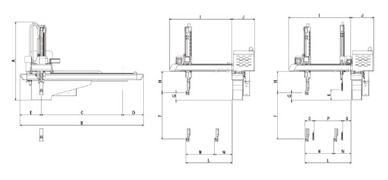 سلسلة TS متعددة محور أجهزة الروبوت هو مناسبة ل50-550ton آلات حقن صب الأفقية. السكتة الدماغية الرأسي للروبوت لدينا تتراوح من 700MM إلى 1،100mm.